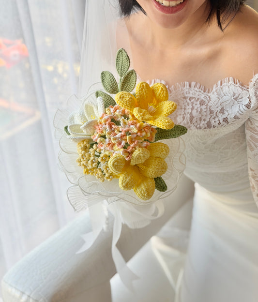 鬱金香繡球針織新娘花球 (黃色)· 多色可選💐Gently Bliss