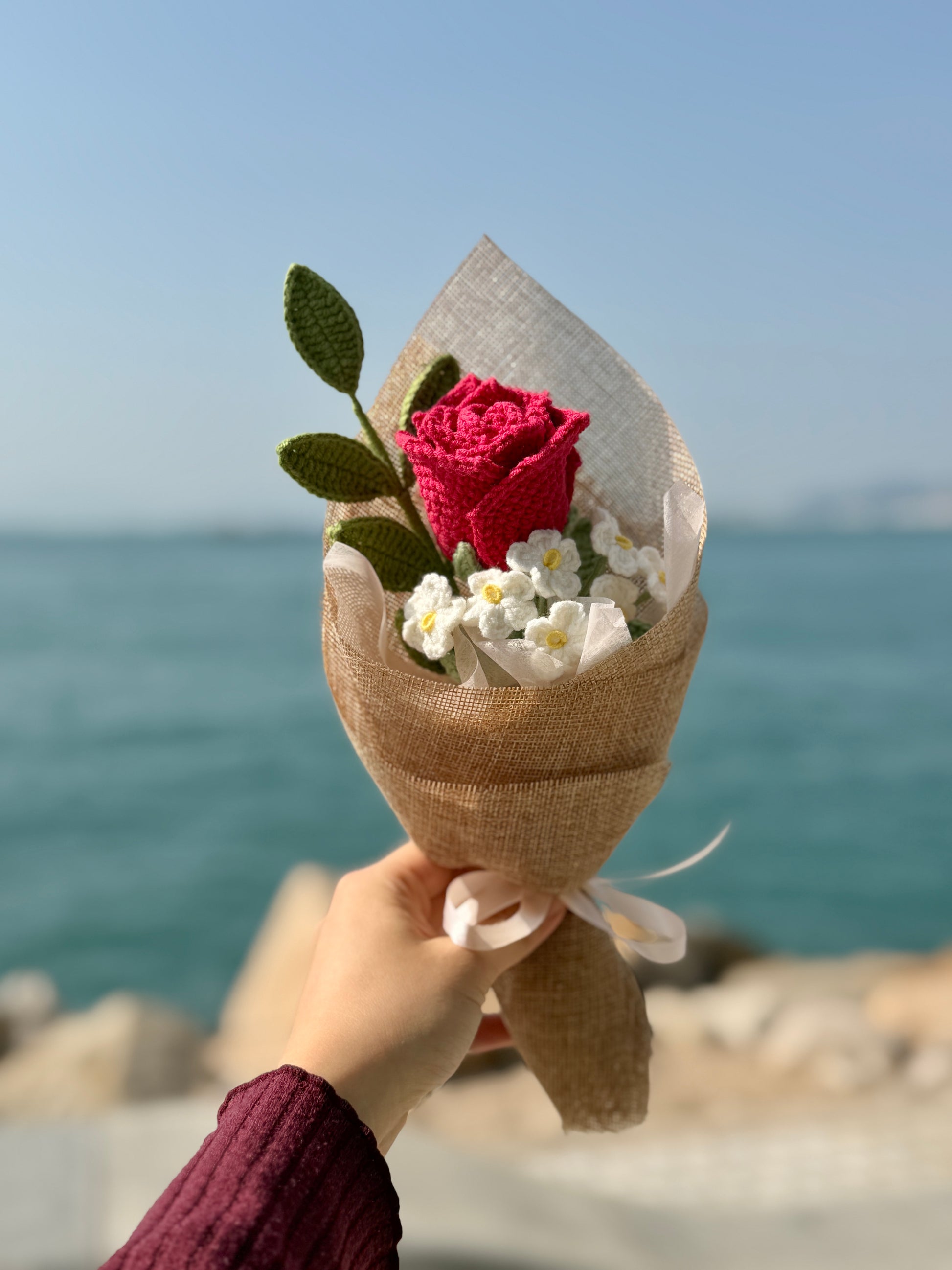• You can add a greeting card/word tag, and there are also various woven flower products to order. Please feel free to contact us via WhatsApp.
