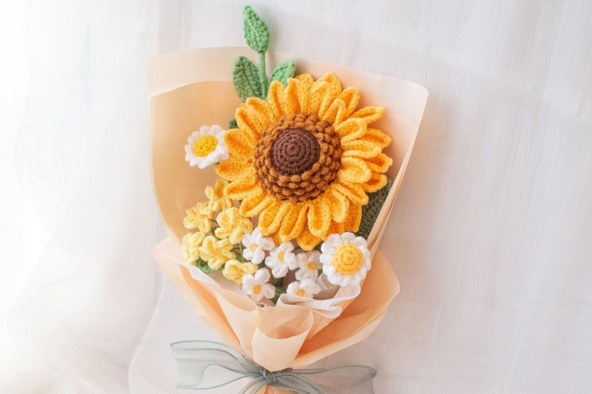 Shinning💐해바라기, 장미, 안개꽃 니트 꽃다발